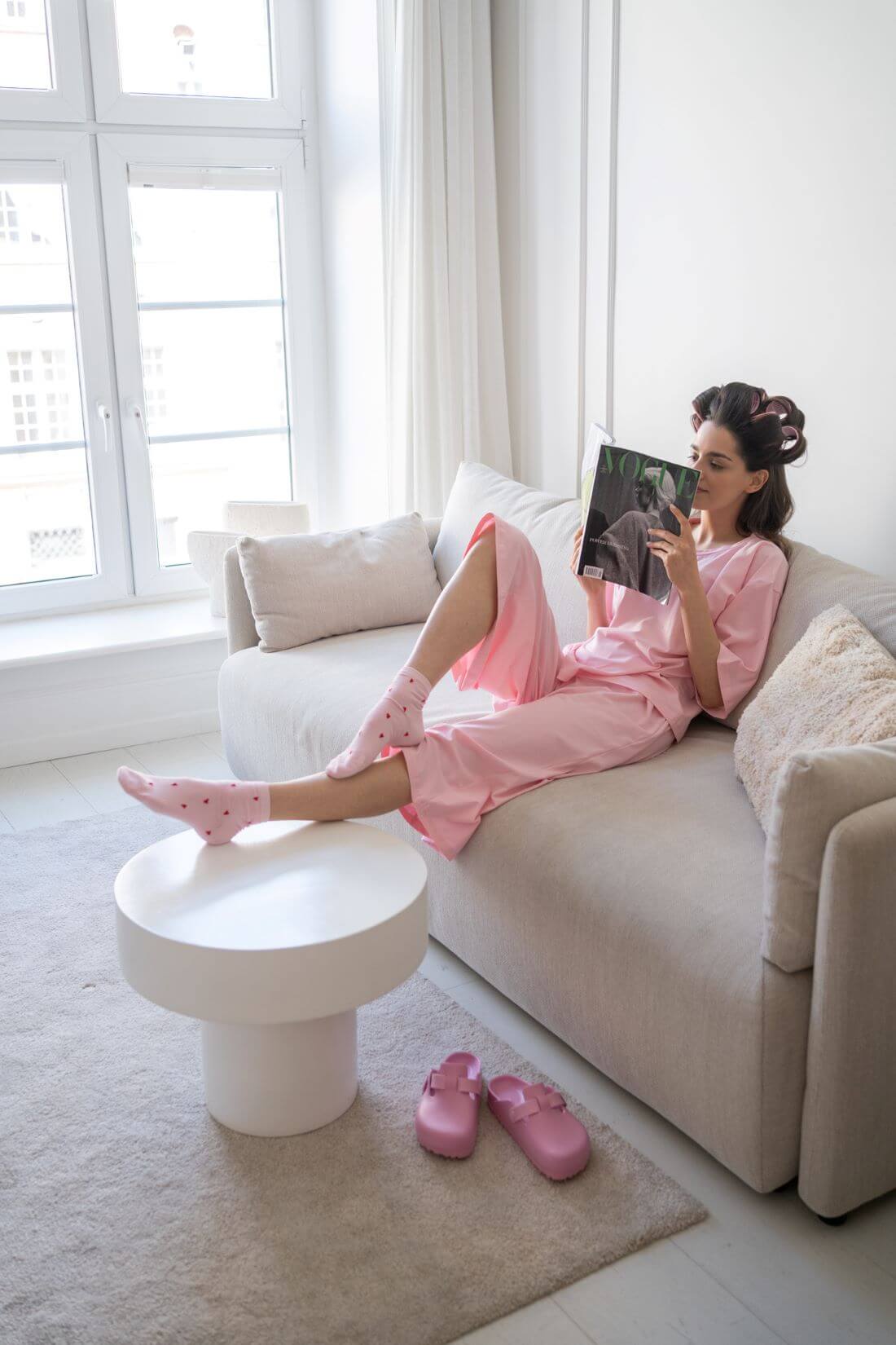 Oversize’owy krój sprawia, że piżama będzie świetnie się układać i wyglądać, niezależnie od sylwetki. Modny różowy kolor kompletu do spania (i nie tylko!) podkreśli dziewczęcą i kobiecą urodę oraz pozwala stworzyć piękne wiosenno-letnie stylizacje z koszulką lub szortami.