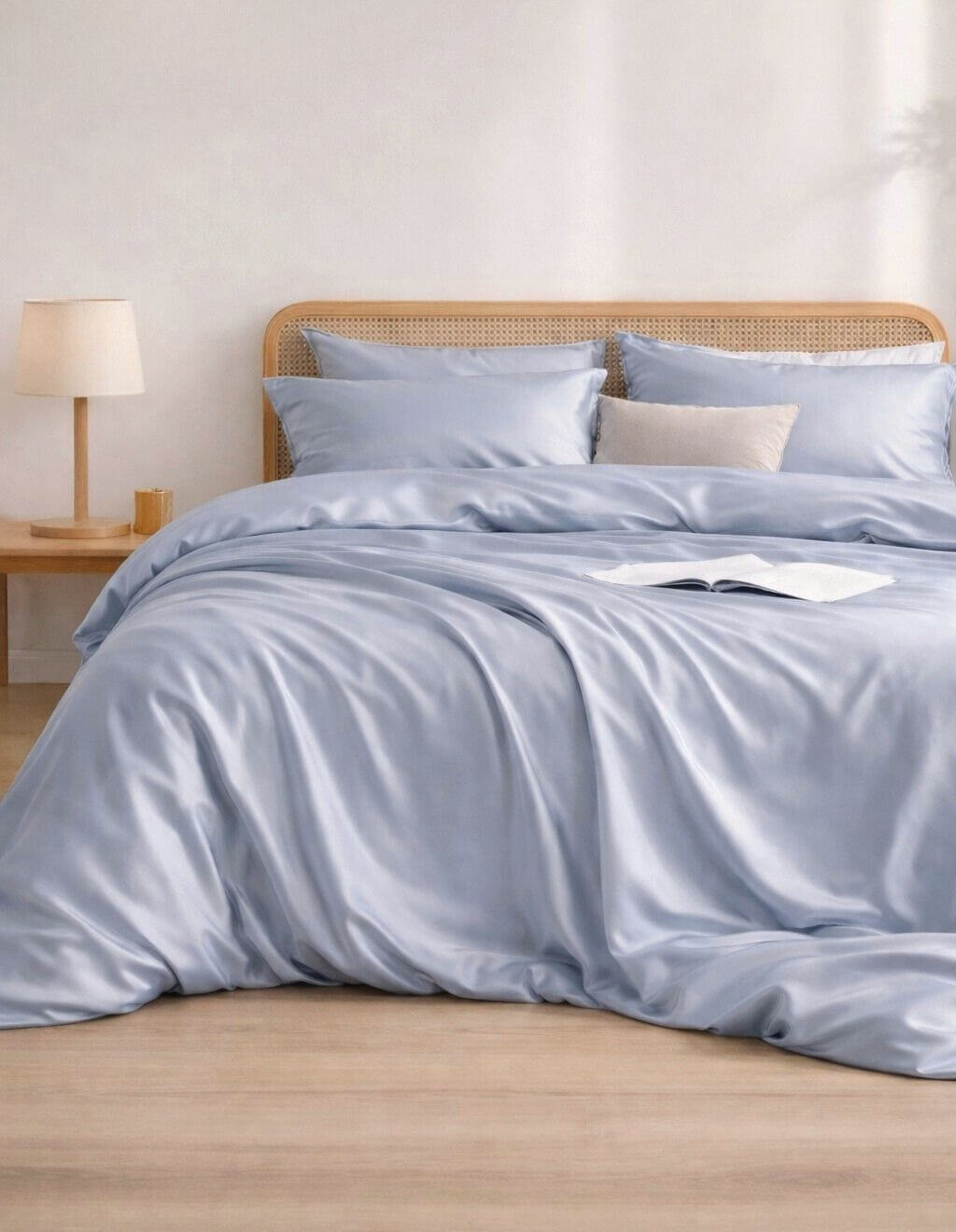Aby stworzyć spójną i elegancką aranżację sypialni, połącz pościel błękitną Ice Blue z dopasowanym prześcieradłem z satyny bawełnianej lub z kontrastowym kocem z wełny merino w kolorze dusty blue.